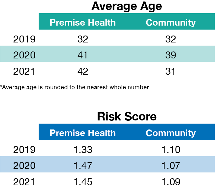 When looking at Southwire’s population data, we found that members who engaged with Premise primary care and pharmacy services not only tended to be older than those seeking care in the community, but also had higher average health risk scores due to chronic conditions.
