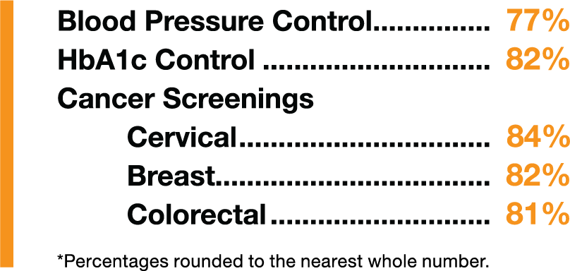The LiveWell Center continues to excel when it comes to helping members manage key chronic conditions. A mark of clinical excellence, members see control metrics* exceeding 95th percentile HEDIS, including: