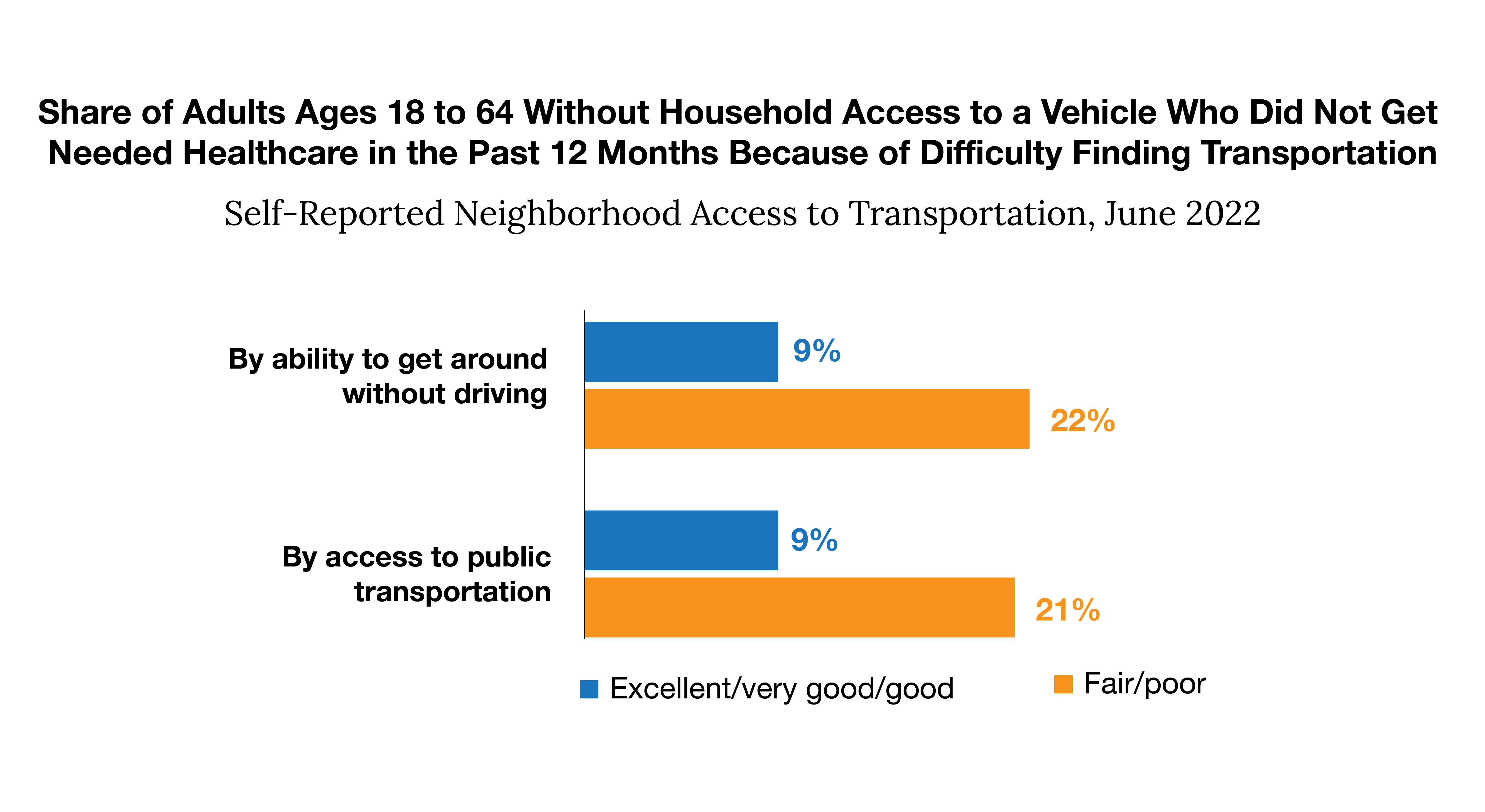 Source: Urban Institute. “More than One in Five Adults with Limited Public Transit Access Forgo Health Care Because of Transportation Barriers.” RWJF, 26 Apr. 2023