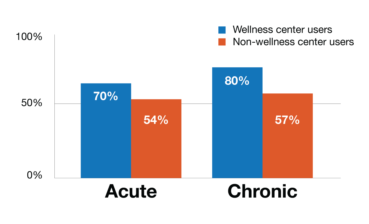 Onsite wellness center users are showing better community resource utilization that non-wellness center users.