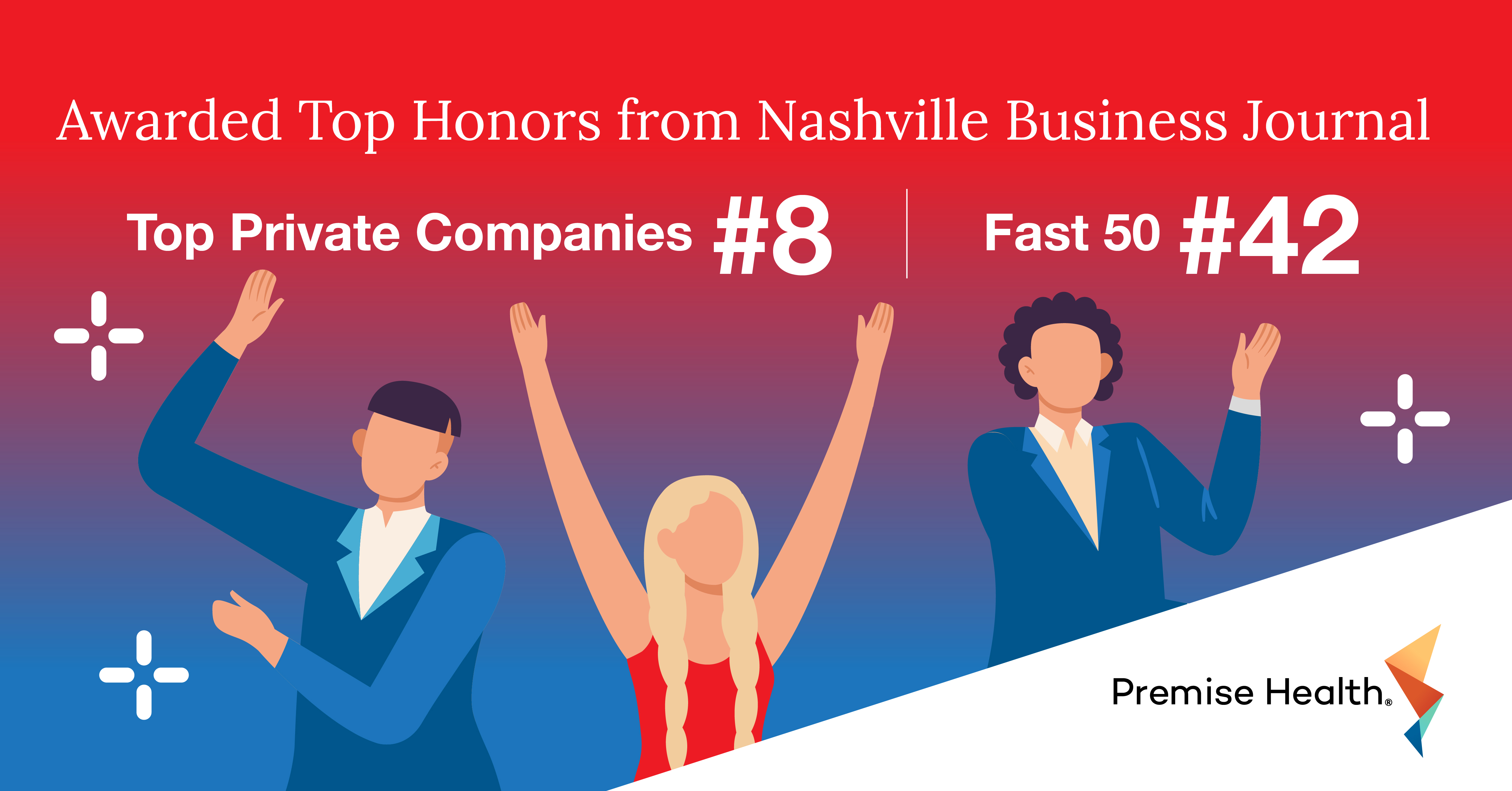 Premise Health was recognized by the Nashville Business Journal (NBJ) as one of Middle Tennessee’s top performing organizations on the publication’s Top Private Companies and Middle Market Fast 50 lists.